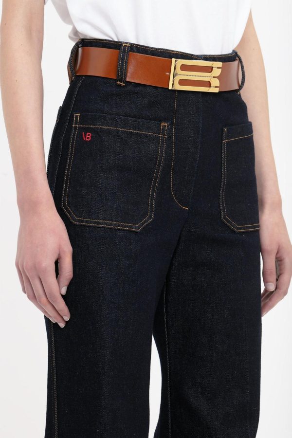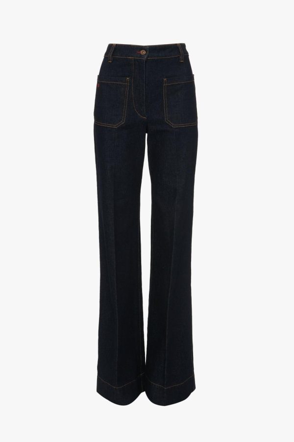 Expertly tailored to enhance your figure with a slim through-the-knee fit that transitions into a graceful flared hem, the Alina Jeans are crafted to create a streamlined, leg-lengthening silhouette. Contemporary front patch pockets add structured sophistication, while the signature branded leather patch at the back delivers authentic Victoria Beckham elegance. Featuring a 6cm internal hem, these jeans can be customized to your perfect length for any heel height, offering exceptional versatility. Take inspiration from Victoria herself and pair with heels for a polished look where the hem elegantly skims the floor.