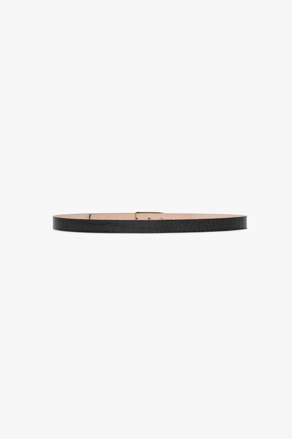 A versatile accessory perfect for adding polish to tailored jeans, T-shirt dresses and louche tailoring, the Dorian Belt is presented in black for the new season. Crafted from tactile croc-embossed calf leather and finished with refined gold hardware, it reflects the house’s detail-driven aesthetic.