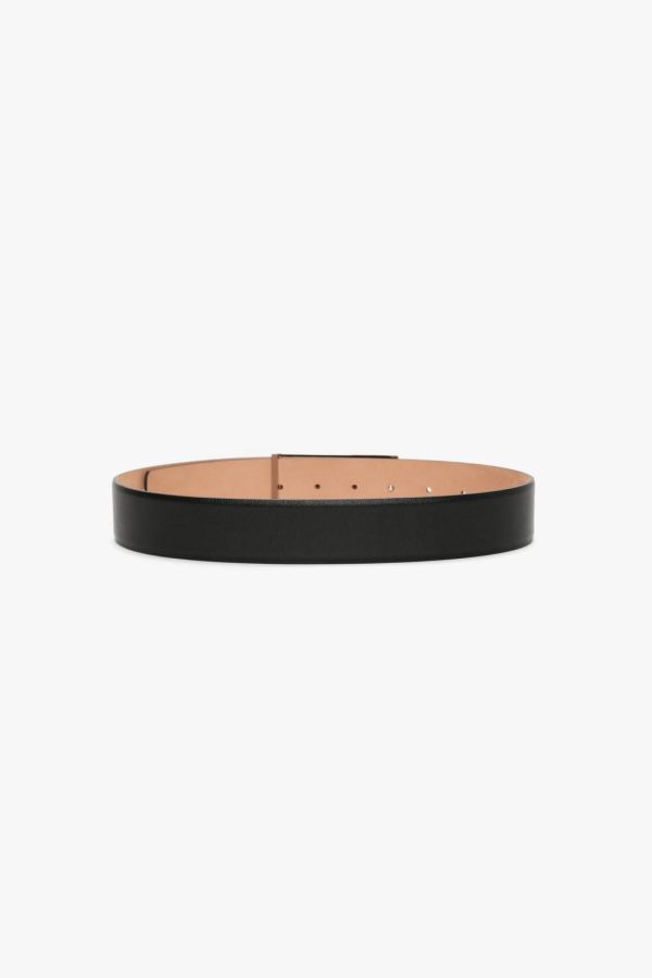 Victoria Beckham Belts | Women Silver Buckle Jumbo Dorian Belt In Black Grained Leather