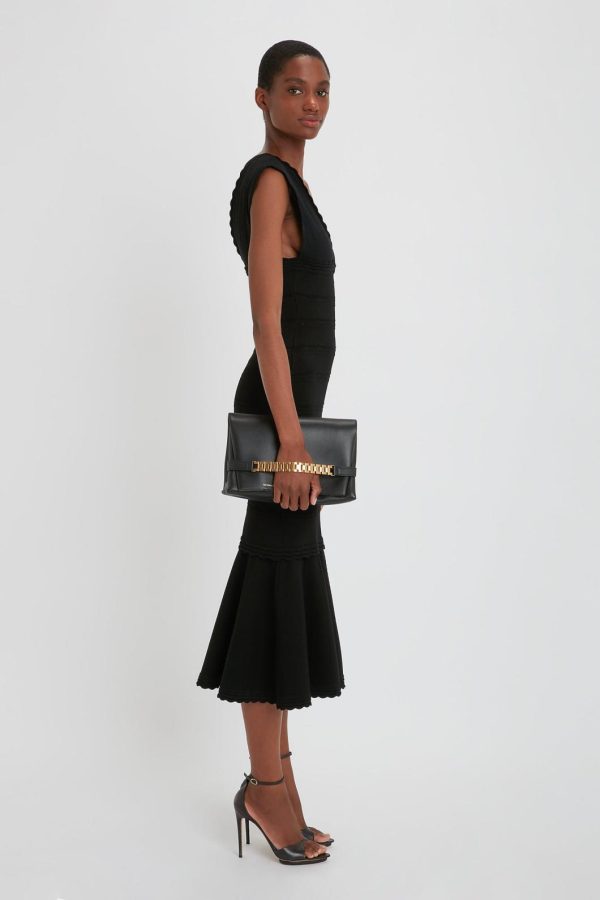Crafted in exquisite Nappa leather, the Chain Pouch – now with a tactile and detachable handle for versatile styling – has a playful sophistication. Features include a middle zip compartment, detachable strap and exterior gold-tone chain detail inspired by one of Victoria’s vintage watch straps. Style it under the crook of your arm, slip your wrist through the chain strap, or carry in the hand for effortless ease.