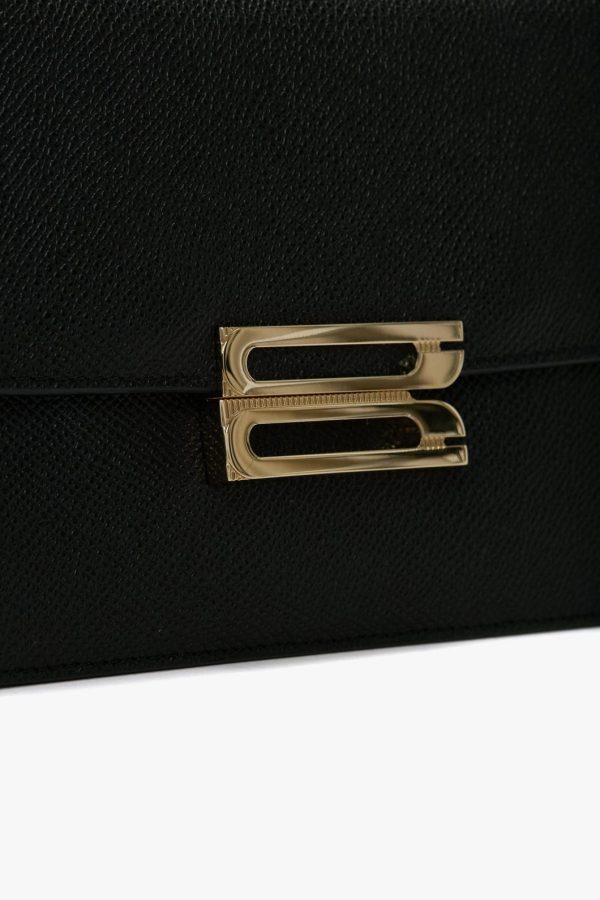 With its clean lines and slender silhouette, the Dorian Bag appeals to a multi-generational customer and is a hero item in the house’s leather goods edit. Crafted from tactile grained leather and designed in classic Black, it features the brand’s signature B buckle, which has been reworked to create a dynamic new locking system, and benefits from a removable and adjustable ‘smart strap’ and snap buttons for versatile styling as a shoulder or crossbody bag. Lined in microsuede, it has an internal double compartment and small flat leather pocket for secure storage and is finished with the discreetly stamped address of Victoria’s London studio (N.202) followed by a unique serial number.
