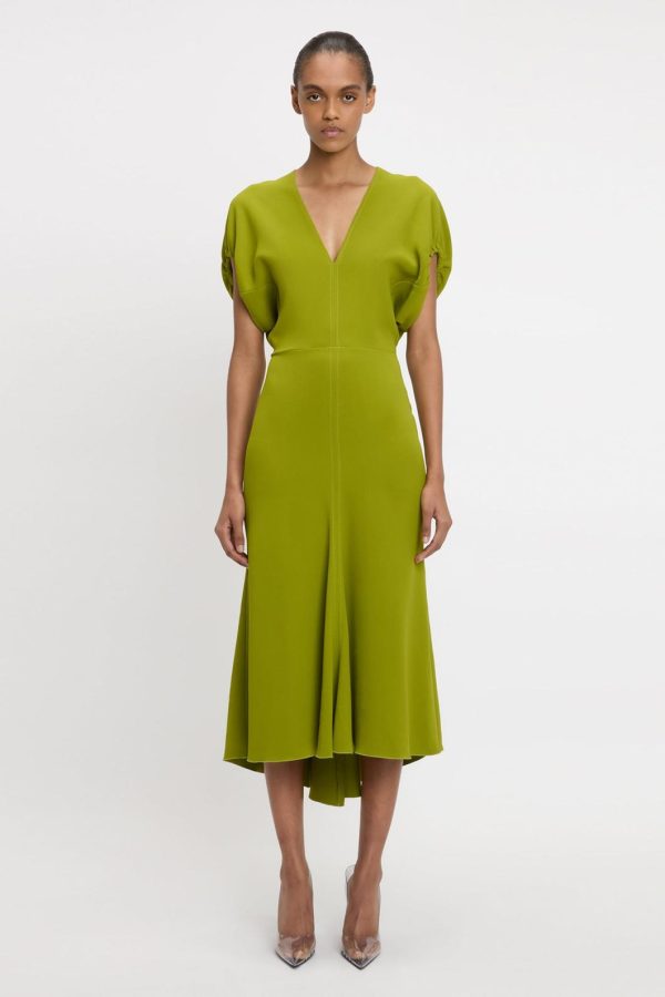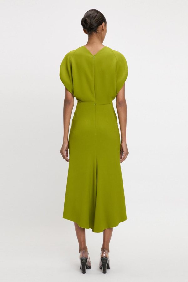Directional sleeve detailing brings a discreet point of difference to the house’s signature midi dress style. Characterised by short full sleeves with tactile rope edging, the Blouson Detail Midi Dress in Parakeet also has a V neckline with internal binding and a longer-length hemline at the back for added fluidity.