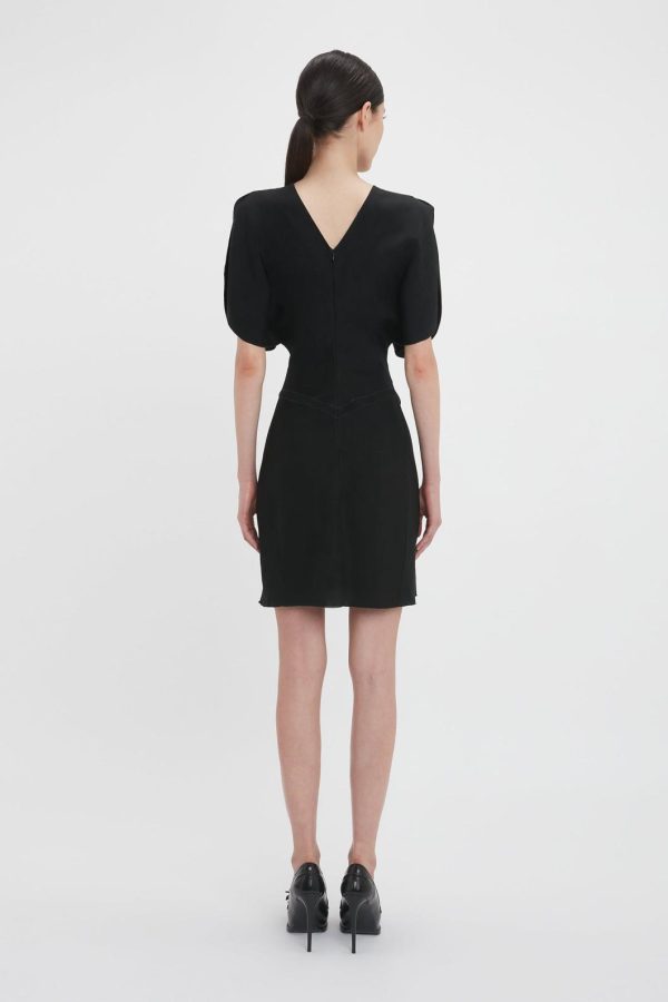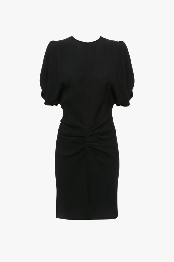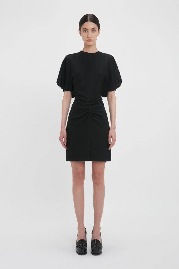 A playful reinterpretation of one of the house’s signature midi dresses, this Gathered Waist Mini has a ruched front, tulip sleeve detail and slight V-neck at the back. With a flattering waist and hip-hugging silhouette, as well as exposed seam details, it has a feminine but directional aesthetic.