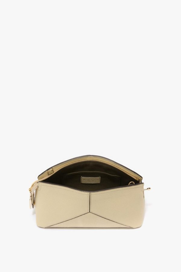 Meet the beautifully refined Victoria Crossbody, a sleek evolution of the iconic Victoria Clutch. This versatile bag features a detachable adjustable ‘smart strap’ that effortlessly converts from shoulder bag to crossbody to clutch, giving you multiple styling options for any occasion. Expertly crafted from premium textured calf leather in a sophisticated Ivory hue, the bag showcases the brand’s signature V-shaped panel stitching that creates eye-catching dimension. The discreetly stamped London studio address (N.202) followed by a unique serial number adds exclusive appeal, while the luxurious textile lining and practical flat internal pocket complete this elegant package.
