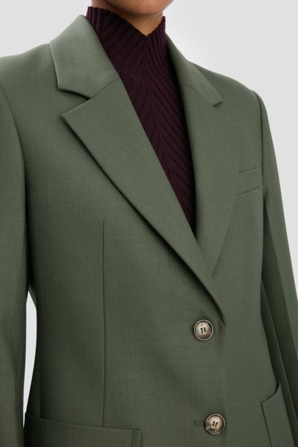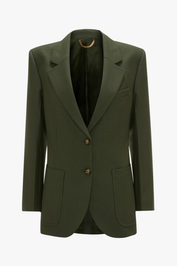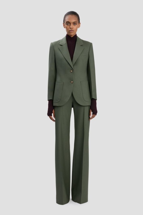 A signature style in the house’s tailoring archive, the Patch Pocket Jacket is single breasted with a lean, contemporary cut and shoulder pads for a poised silhouette. Distinctive patch pockets add seventies-inspired sophistication, while this season’s shade of Oregano brings a fresh and modern appeal. A two-button fastening, internal chest pocket and chain detail at the back of the neck complete the look.
