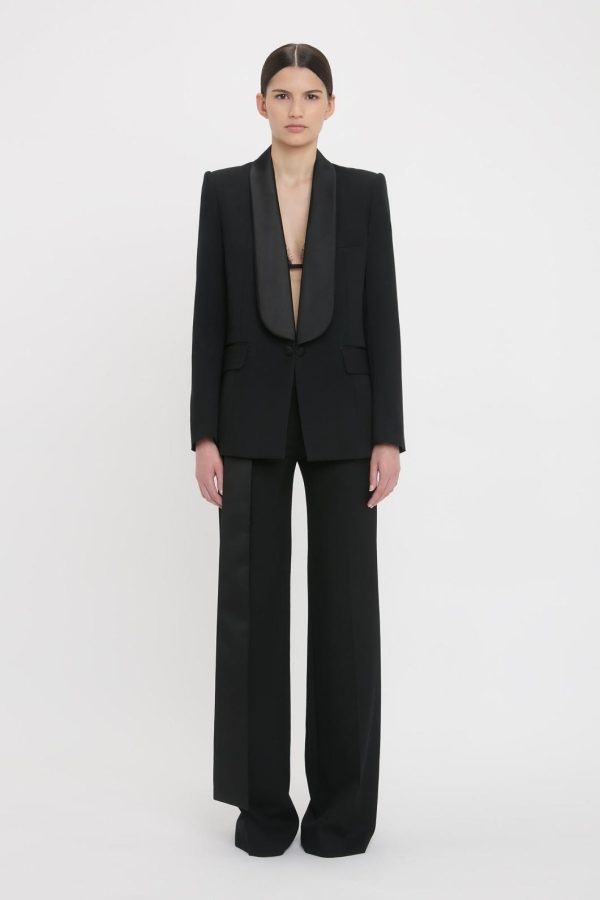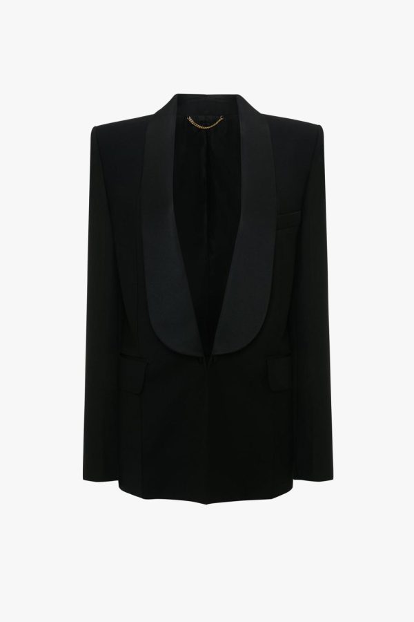 Elevate your evening attire with the Shawl Collar Tuxedo Jacket. It features a chic shawl collar and satin lapels for a sleek, sophisticated silhouette. Perfect for transitioning from formal events to stylish gatherings, pair it with tailored trousers or a glamorous gown for a timeless look that makes a statement.