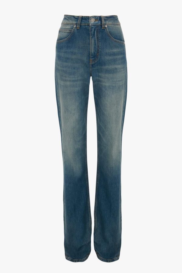 A high waistline and straight leg bring a modern sensibility to the Julia Jean. Crafted from stretch denim for an expert fit and presented in a gently distressed shade of Washed Blue, the Julia has a branded leather patch at the waistband, branded silver rivets and tobacco topstitching. A house favourite, the Julia Jean embodies a relaxed and laid-back attitude.