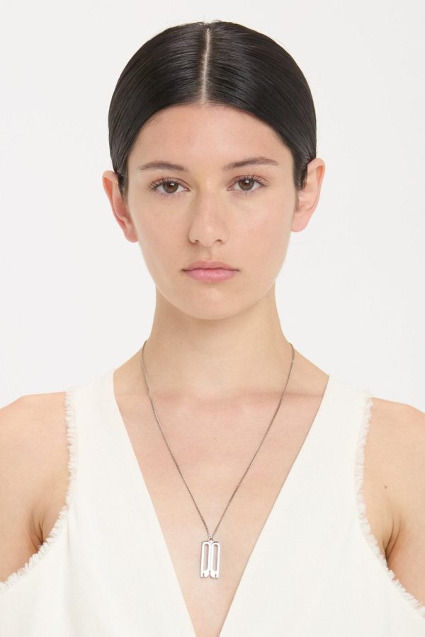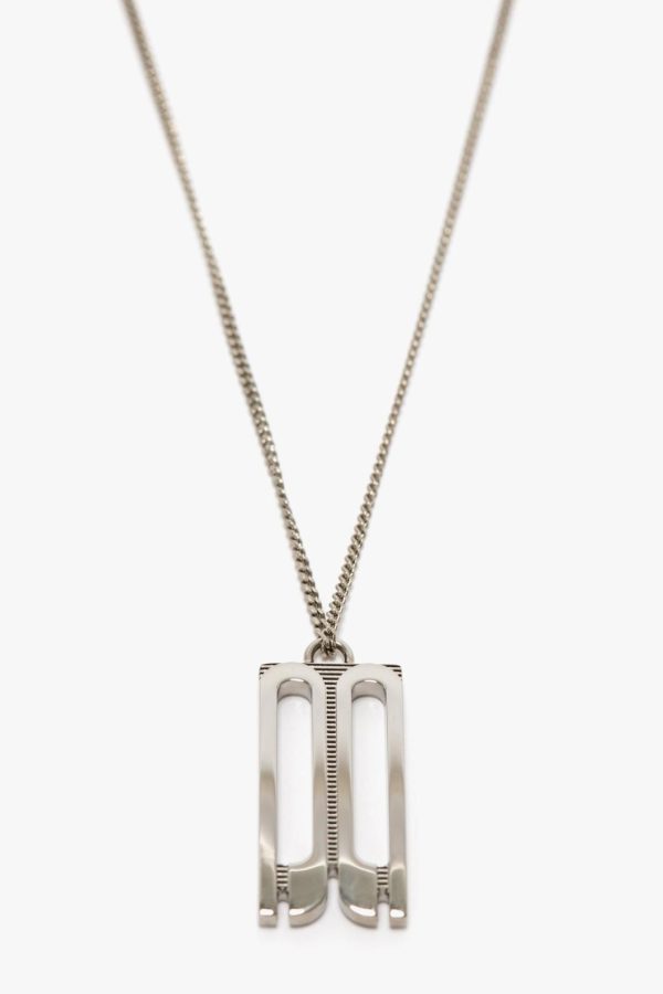 The elegant Dorian necklace is designed around the house’s signature B Frame detail. Rectangular in shape with a fine chain that passes through the pendant’s eyehole, it is crafted in Italy from brass and presented in a sleek shade of Silver.