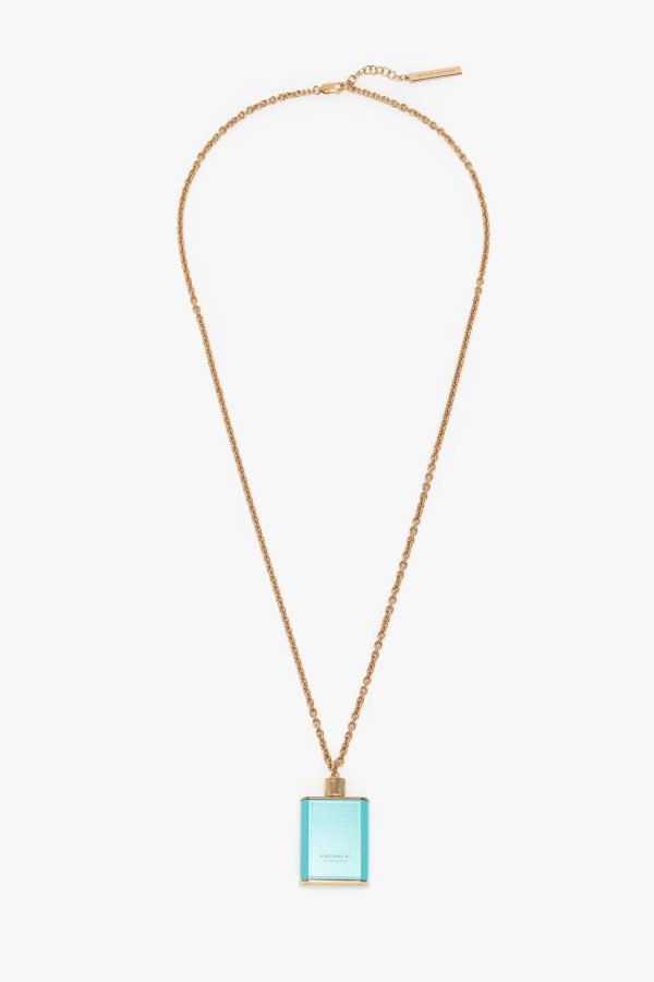 Designed to carefully hold the house’s Portofino signature scent, this unique pendant is exquisitely crafted in Italy from gold brushed brass. With a bespoke dropper to ensure a perfect transition from parfum vessel to necklace without any spillage, it is beautifully finished with a lobster clasp and Victoria Beckham branding at the bottom of the charm.