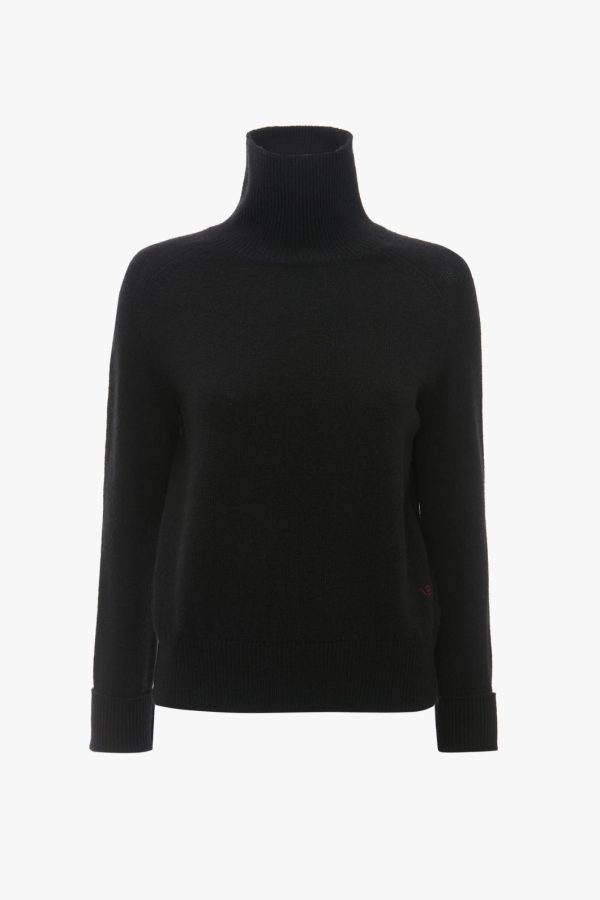 The classic polo neck is reframed with contemporary detailing including a saddle shoulder, ribbed neckline and embroidered Victoria Beckham monogram. Made from a velvety lambswool, it can be worn with the neck folded over, or upright for a more dramatic look.
