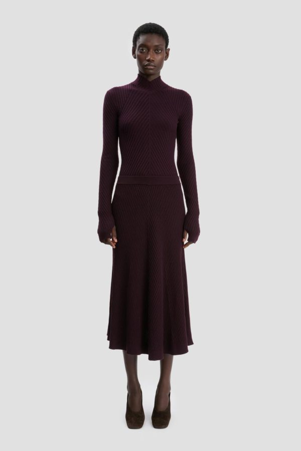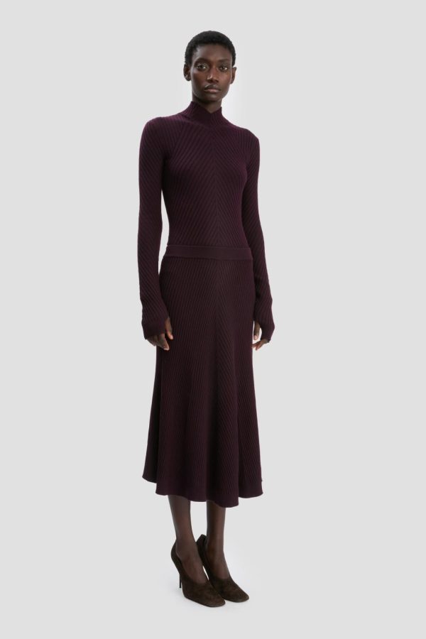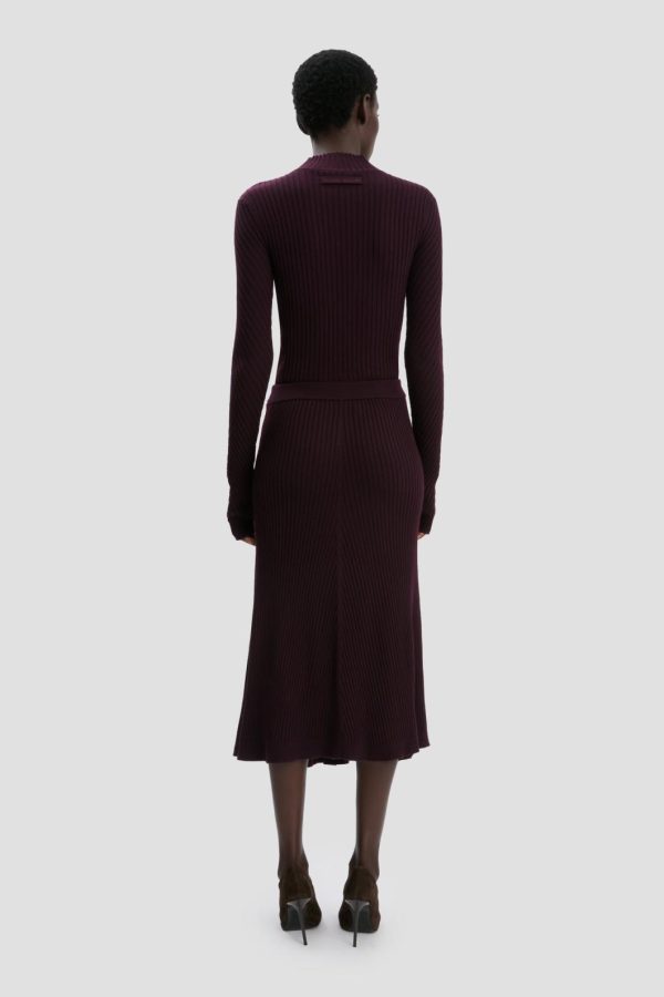 A polished piece of everyday wear, the Ribbed Midi Skirt in Merlot exudes the house’s signature unstudied elegance. Crafted from soft merino wool in a fine gauge ribbed finish, it has an elasticated waist for comfort and ease and a distinctive curved hemline, dipping longer at the front for a directional finishing touch.