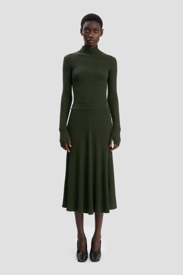 A polished piece of everyday wear, the Ribbed Midi Skirt in Oregano exudes the house’s signature unstudied elegance. Crafted from soft merino wool in a fine gauge ribbed finish, it has an elasticated waist for comfort and ease and a distinctive curved hemline, dipping longer at the front for a directional finishing touch.