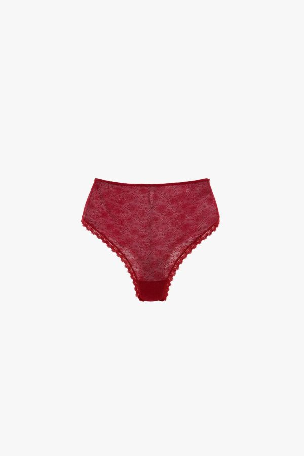 Figure-flattering lingerie is a house hallmark and the Lace Monogram Knicker in Poppy Red gently shapes and smooths with its high-waisted cut and high leg. A delicate lace edging adds elegance, mirroring the finish on the coordinating Lace Monogram Bra, also available in vibrant Poppy Red.