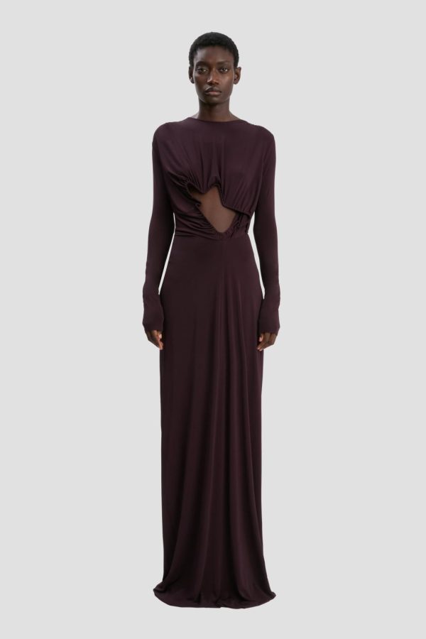 Victoria Beckham Merlot Cut-Out Wire Gown – Elegant Evening Dress