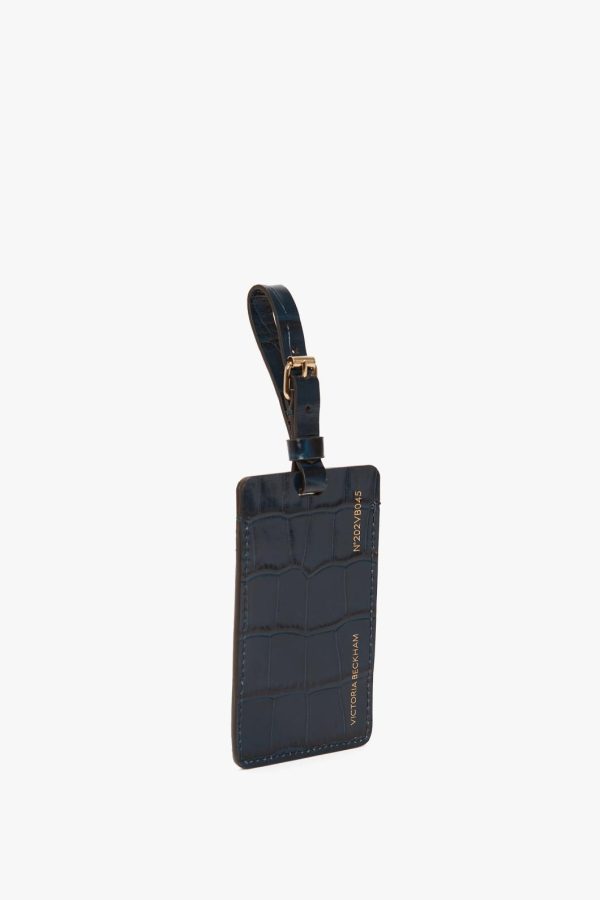 Victoria Beckham Midnight Blue Croc Embossed Leather Luggage Tag