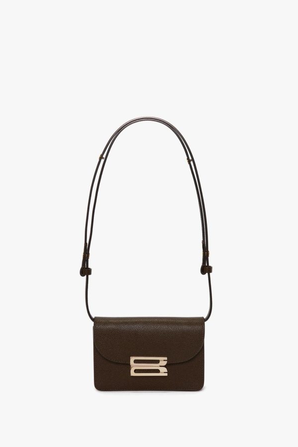 Introducing the AW24 collection’s standout micro bag collection – a perfectly proportioned miniature design that keeps your daily essentials organized and accessible. Expertly crafted from premium textured grained calf leather with a luxurious microsuede interior, this versatile khaki Nano Dorian Bag features an innovative detachable ‘smart strap’ with snap-button adjustments for multiple carrying options. Showcasing the brand’s iconic gold hardware and personalized with Victoria’s London studio address (N.202) plus an exclusive serial number, this piece combines practical function with sophisticated style.