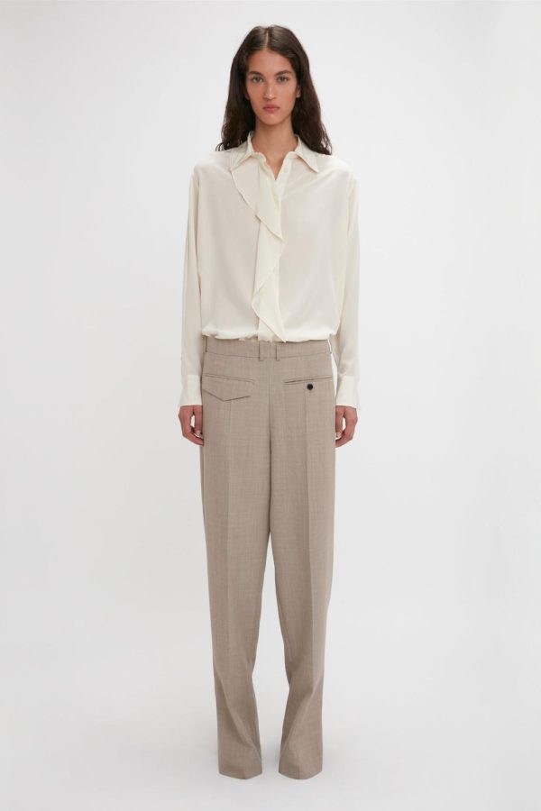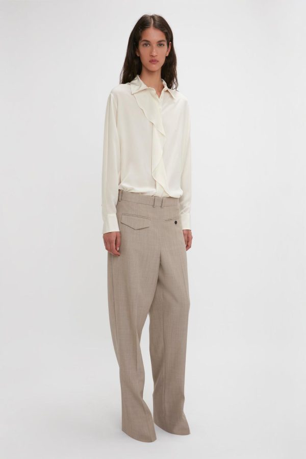 A single asymmetric drape detail cascades down the front of this silk blouse for a fluid silhouette that is enhanced by voluminous sleeves finished with buttoned cuffs. A concealed button-front closure maintains the elegant aesthetic, while the milky shade of Ivory has a nostalgic, romantic appeal.