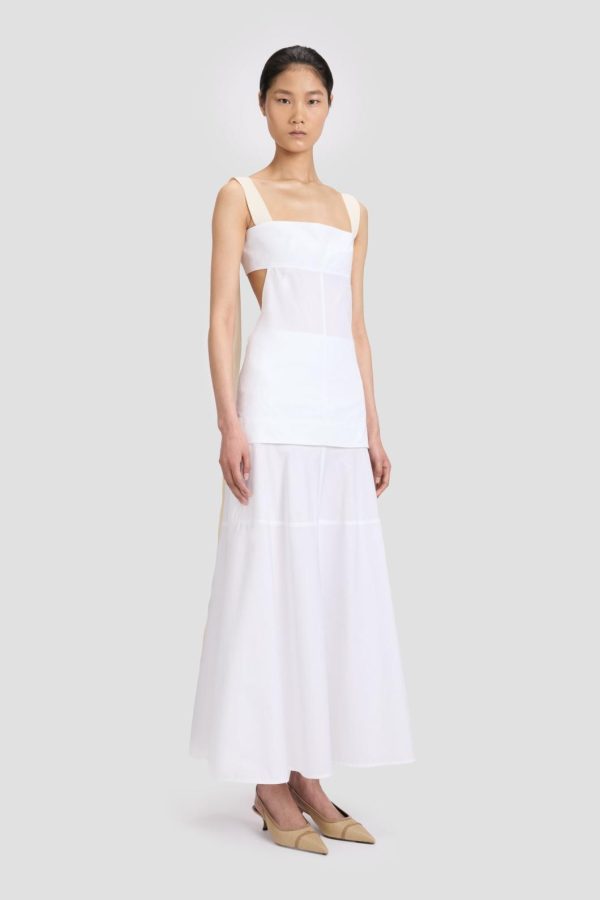 The 1990s-inspired cami top is reimagined with a discreet cut-out at the back of the bodice for a playful point of difference. The Cut-Out Cami Top in White also has darts at the front bust panel and herringbone straps with metal adjusters to ensure it fits and flatters perfectly. Crafted from cotton poplin, it is finished with a single button fastening at the lower back.