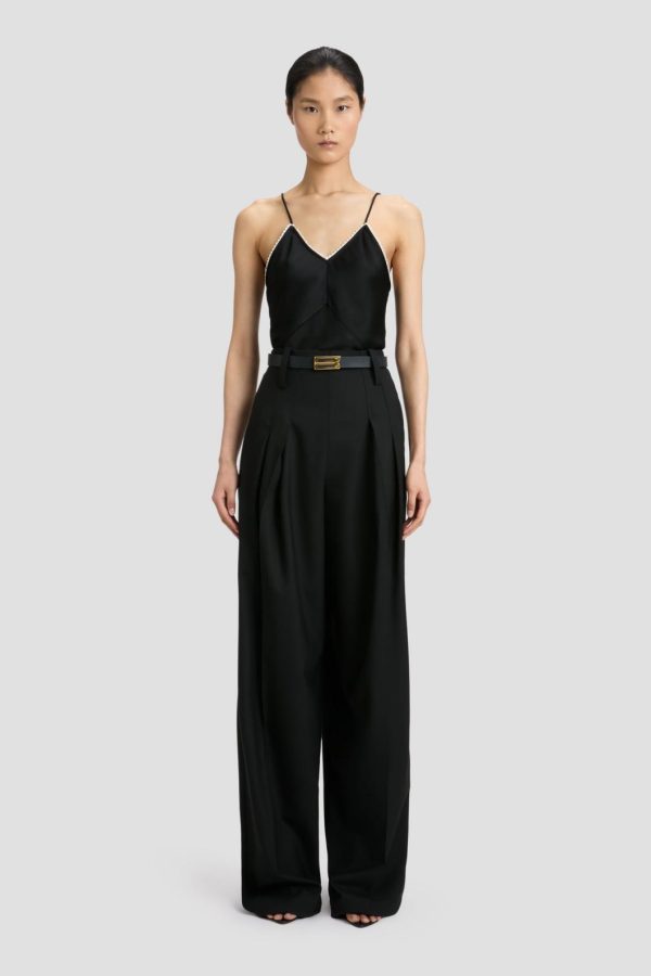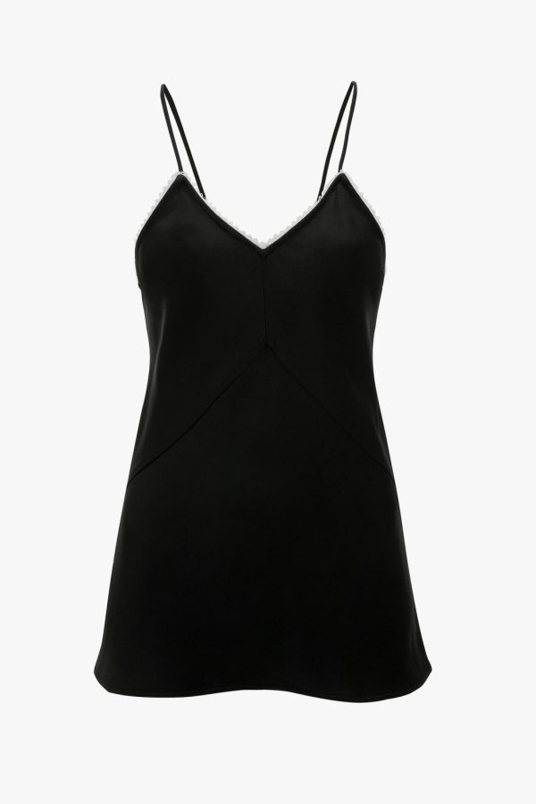 The quintessential 1990s cami top is reimagined with a tactile lace trim at the neckline. Front and back diagonal seams with topstitching add further visual interest, while rouleau straps with an excess for alteration ensure absolute comfort and versatility. Presented in classic Black, it reflects the house’s talent for reimaging wardrobe basics.