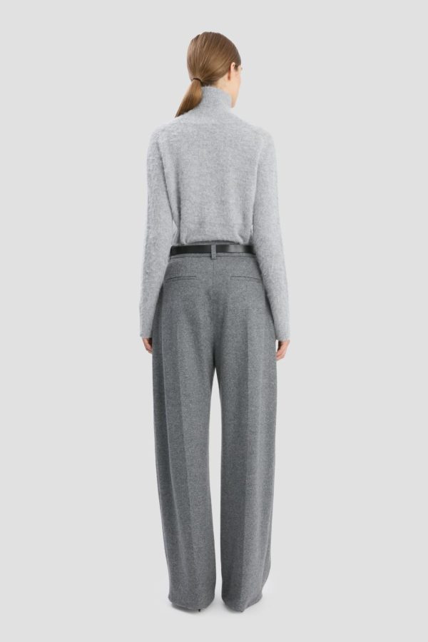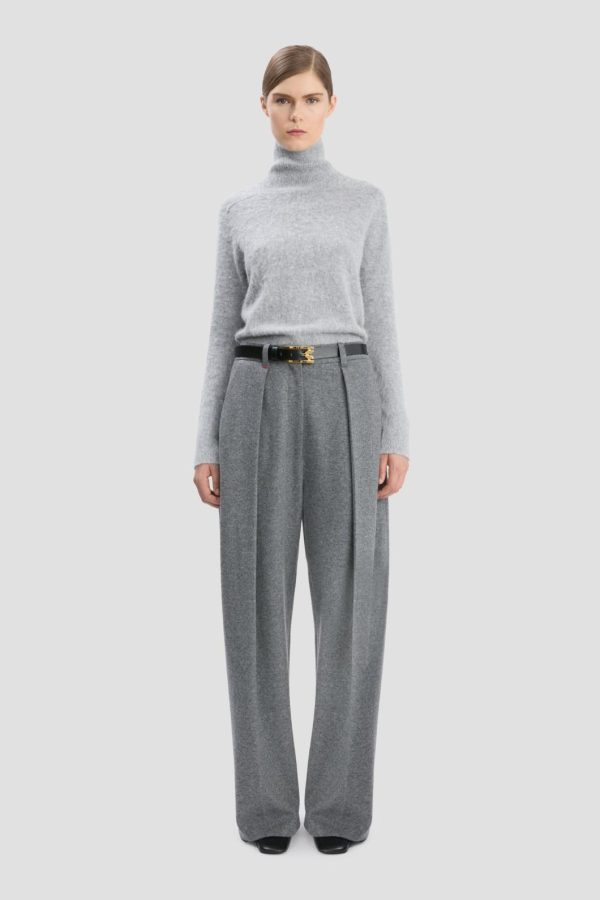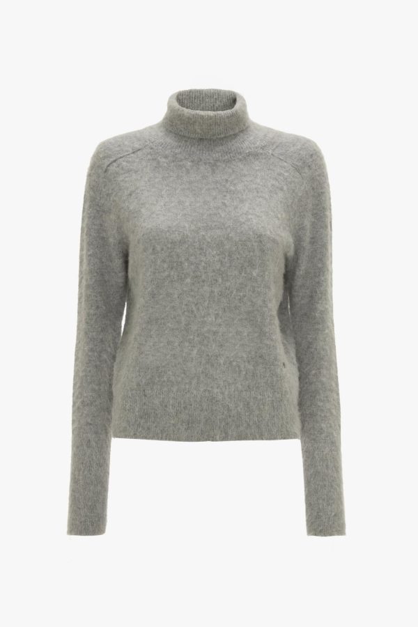 Elevating the everyday is part of the Victoria Beckham brand DNA. A super-soft lambswool-alpaca blend brings a luxurious tactility to the Polo Neck Jumper in Grey Melange, while a saddle shoulder design adds a discreet but distinctive talking point. A ribbed hemline and cuffs and a contrasting embroidered Victoria Beckham monogram complete the look. With its high, roll-down neckline, the Polo Neck Jumper is a versatile wardrobe staple.