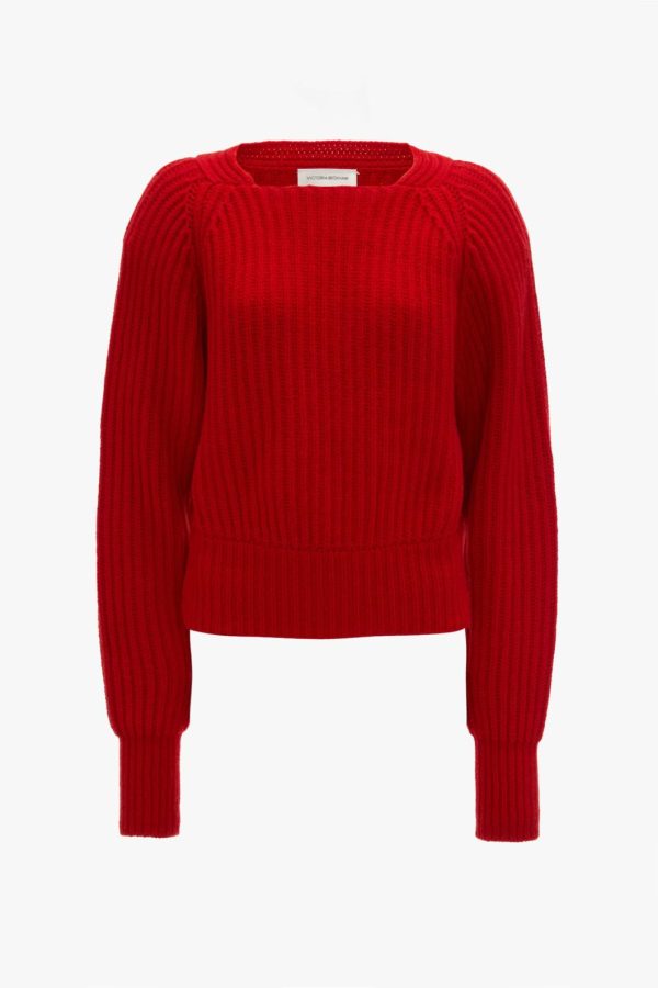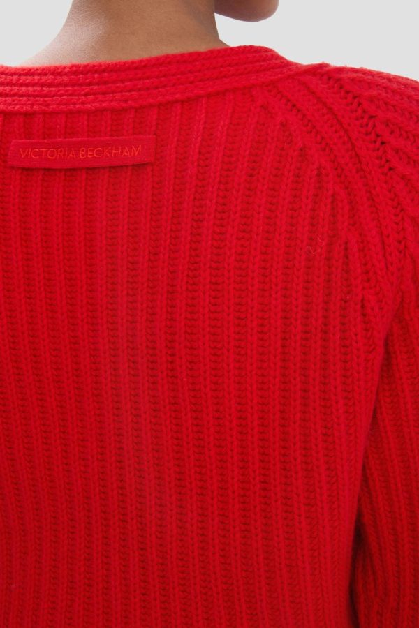 Crafted from a luxurious cashmere blend in a chunky fisherman’s rib stitch, the Rib Detail Cropped Jumper in vibrant Cayenne has a thick, tactile texture. Shoulder pads bring structure to the silhouette but can be removed for a more relaxed aesthetic, while raglan sleeves add an attractive design feature. Crafted with a cropped hemline for a feminine undertone, it is finished with tonal Victoria Beckham embroidery at the back of the neck.