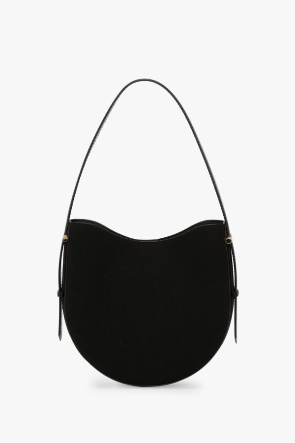 Meticulously crafted in Italy from utilitarian canvas, the Medium Dia Hobo Bag has a sophistication that is rooted in practical and polished design codes. With its softly rounded silhouette and gold cufflink hardware, it marries masculine and feminine viewpoints beautifully. A magnetic closure and small internal slip pocket allow for secure storage, while the house’s signature gold branding, including a Victoria Beckham logo and unique serial code inside the bag, add subtle points of difference. The tactile combination of canvas and leather feels fresh and modern.