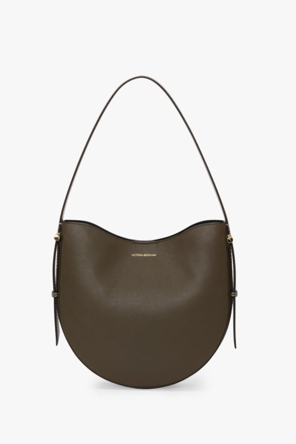 Meticulously crafted in Italy from shiny calf leather, the Medium Dia Hobo Bag in Dark Khaki has a sophistication that is rooted in practical and polished design codes. With its softly rounded silhouette and gold cufflink hardware, it marries masculine and feminine viewpoints beautifully. A magnetic closure and small internal slip pocket allow for secure storage, while the house’s signature gold branding, including a Victoria Beckham logo and unique serial code inside the bag, add an elevated point of difference.