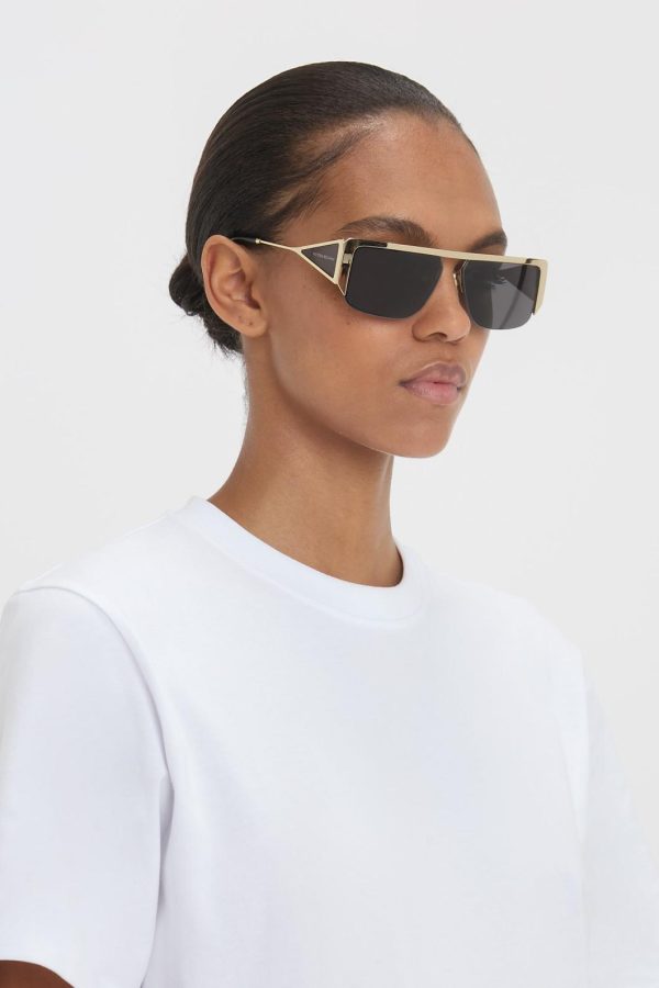 Victoria Beckham Sunglasses | Women Flat Top Rectangular Sunglasses In Gold-Grey