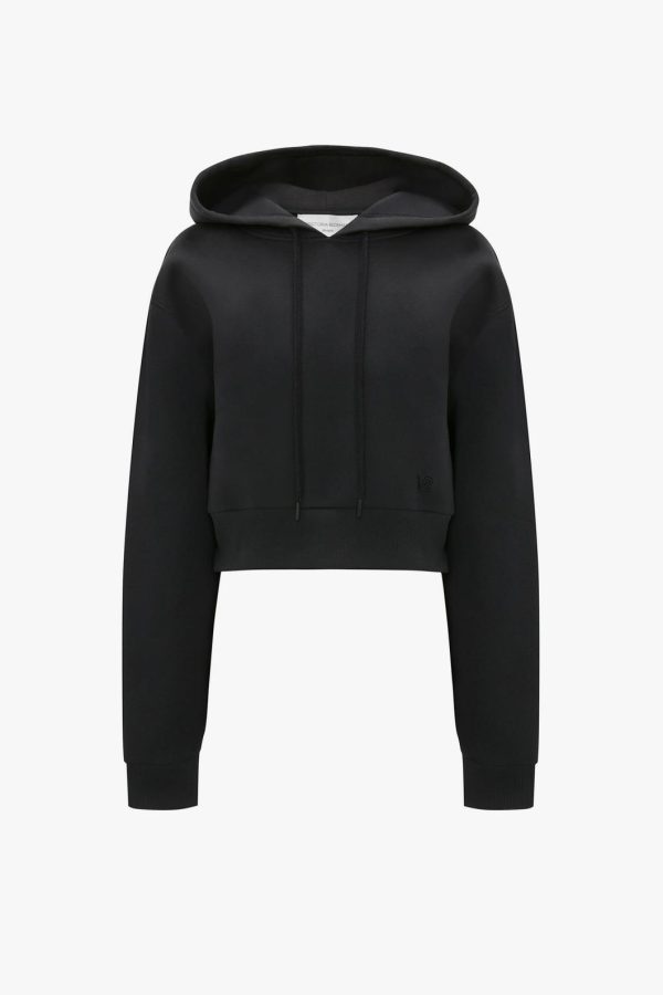 Victoria Beckham T-Shirts & Sweatshirts | Women Cropped Neoprene Hoodie In Black