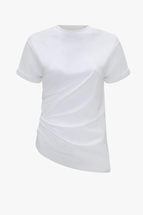 Tactile side ruching brings finesse to a simple white T-shirt in the Gathered Detail T-Shirt. Elevated further with an asymmetric hemline and a Victoria Beckham logo at the back of the neck, it also has turned-back short-sleeve cuffs for a hint of off-duty ease. Crafted from 100% organic cotton, it is a year-round wardrobe essential.