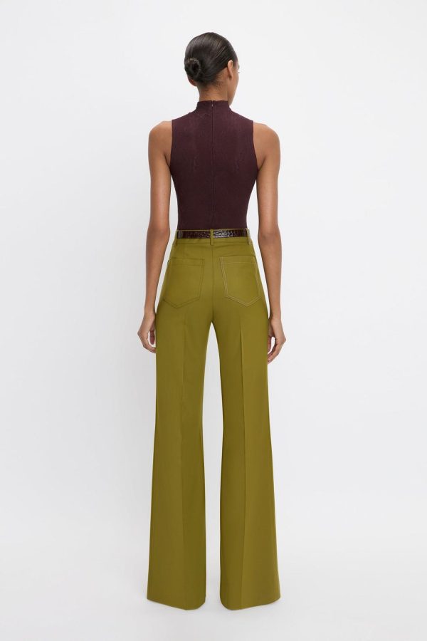 A high-rise waist imbues the Alina Trouser with an elongating silhouette. Expertly tailored, this signature house style has a straight wide-leg cut and front and back patch pockets drawing on 1970s-style references. Presented in a warm shade of Willow for SS25, the Alina Trouser has a subtle formality that translates effortlessly from day to evening.