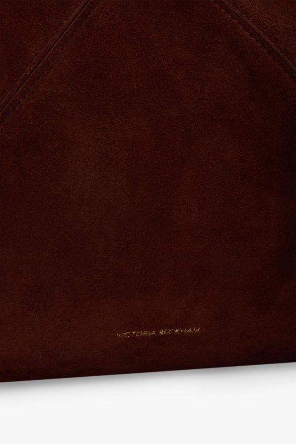 Tactile suede brings a butter-soft finish to the Victoria Tote. Presented in luxurious Dark Brown, it has an unstructured silhouette for a fluidity that is fresh and modern. Simple lines and the absence of traditional hardware create a minimal aesthetic punctuated only by subtle V stitching on the front panels. The house’s signature gold branding, including a Victoria Beckham logo and unique serial code, are discreetly located inside the bag. Wide leather straps and suede bonded lining complete the look.