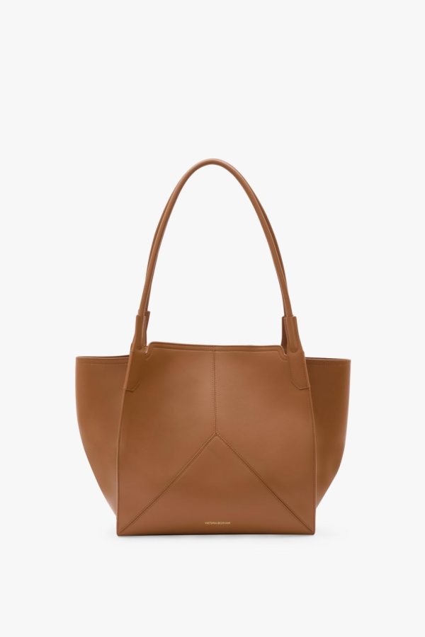 A diminutive alternative to the house’s Victoria Tote, the Victoria Tote in Tan leather is crafted in Italy from smooth calf leather and designed with an unstructured silhouette and minimal hardware. Discreetly decorative V-stitched panels reflect the house’s signature restraint, while a tonal suede lining adds a tactile finishing touch. An internal flat pocket ensures secure storage.