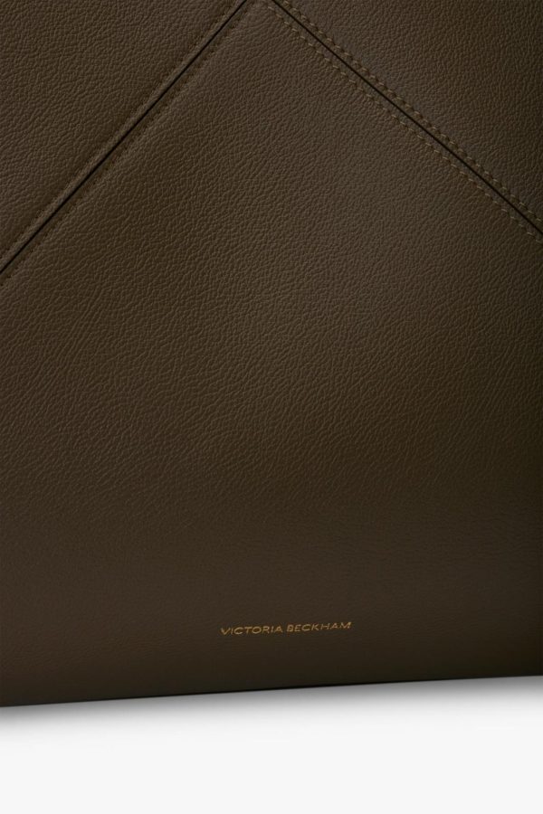 Part of the Victoria family of leather goods, the XL Victoria Travel Tote is defined by its simple lines and minimal aesthetic. Discreet V-stitched panels and gold hardware, including a Victoria Beckham logo and unique serial number, are the only decoration. The tactile soft grained leather adds depth and interest to the silhouette, while the utilitarian shade of Khaki adds a contemporary talking point. Canvas lining and an internal concealed pocket with zipper complete the look.