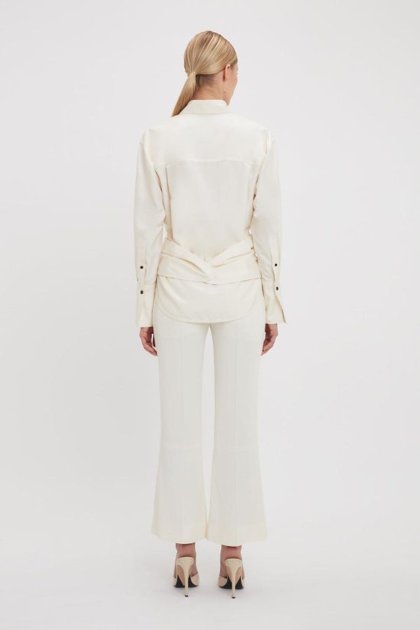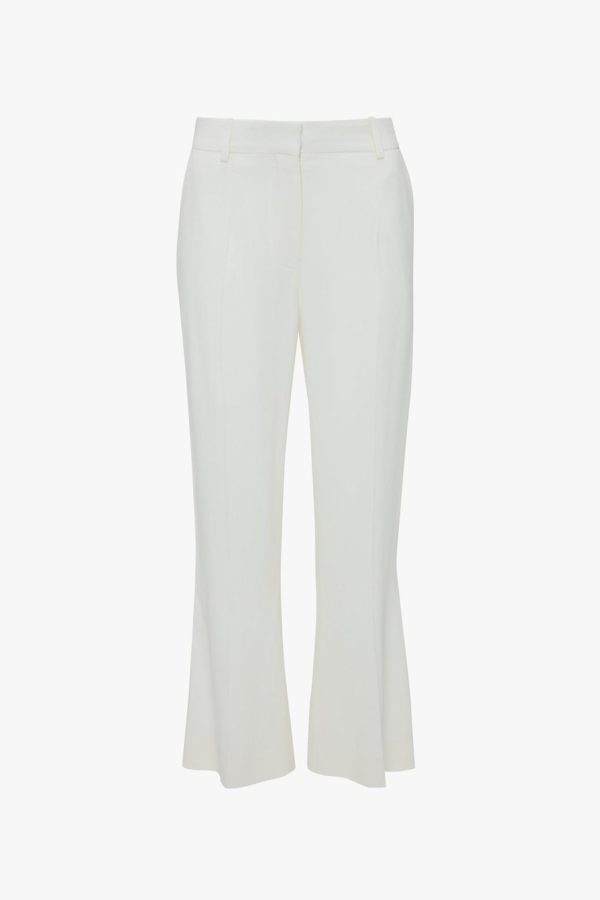 Crafted from 100% cotton for comfort and breathability, the Cropped Kick Trousers are presented exclusively in flattering Off White for AW24. Designed to reveal a flattering hint of ankle, these tailored essentials have a contemporary kick hem for a feminine take on the classic cropped pant. A front zip closure, front pockets and welt pockets at the back create a clean-cut silhouette. A horizontal leg seam adds a contemporary point of difference.