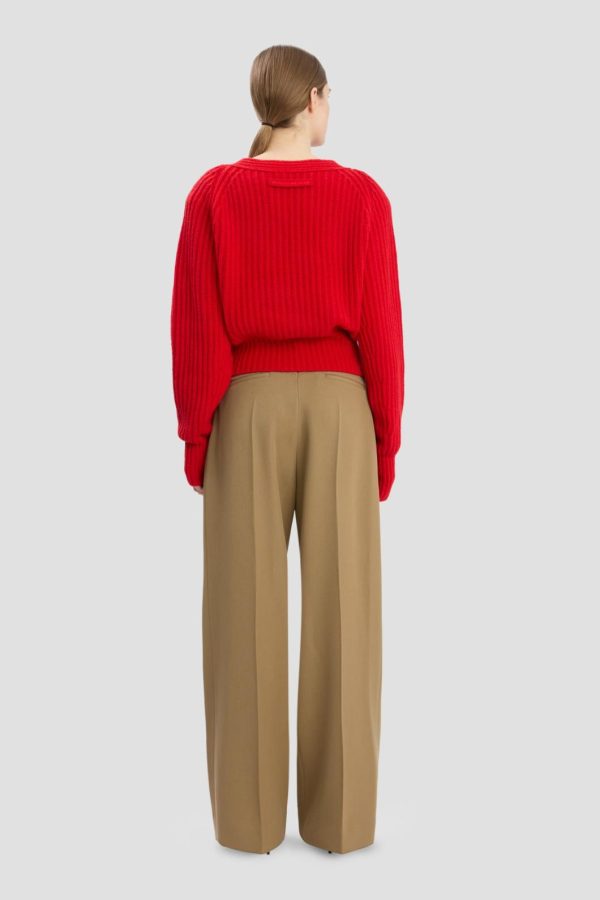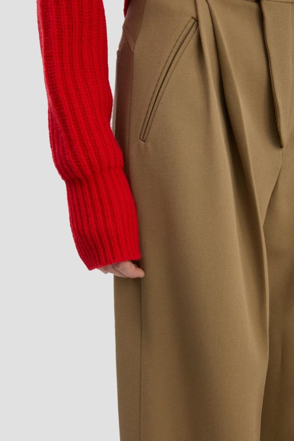 Meticulous tailoring is a part of the Victoria Beckham brand DNA. Crafted from heavy gabardine for a structured silhouette, the Wide Leg Trouser in Dark Camel has a flattering high-rise cut and front pleats for added definition. Slanted double jet pockets are functional and unfussy, while discreet topstitching at the back yoke adds visual interest. Single jet pockets at the back complete the look.