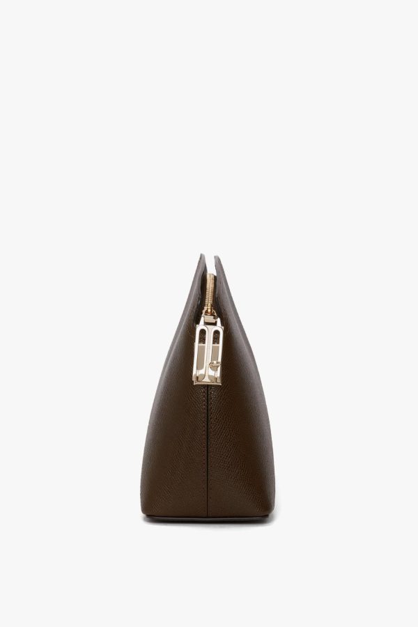 This textured calf leather Victoria Clutch is a favourite of Victoria’s. Presented in utilitarian Khaki, it has a sleek silhouette with structured body and softly rounded top for a contemporary blend of masculine and feminine. Design features include an engraved B zip puller and padlock closure, snap button to hold the zip tape in place, textile lining and a flat internal pocket. The house’s signature design feature of leather panels stitched to form a V shape adds visual interest, while the discretely stamped address of Victoria’s London studio (N.202) followed by a unique serial number elevates the look further.