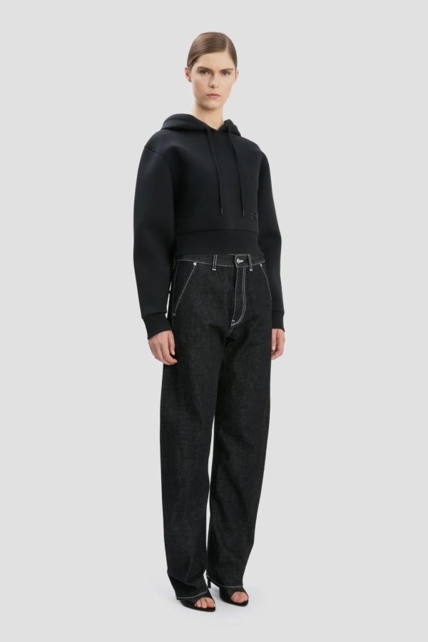 Designed with a contemporary boyish boxy fit, this Cropped Hoodie sits perfectly at the waistline for a clean, modern silhouette. It features full-length sleeves with ribbed cuffs and a structured hood with a premium metal tipped drawstring. A signature silicone B logo detail at the front left body adds the house’s distinctive yet subtle branding.