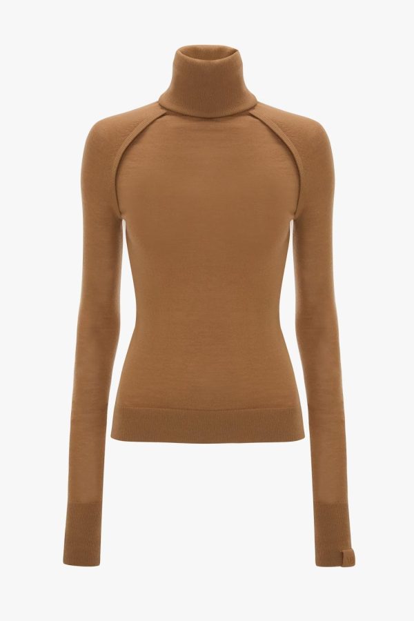 Victoria Beckham Women’s Dark Camel High Neck Merino Wool Top