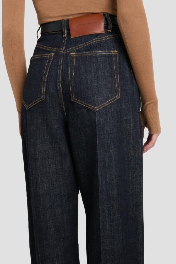 Victoria Beckham Women’s High Waisted Cinched Jeans in Indigo Rinse