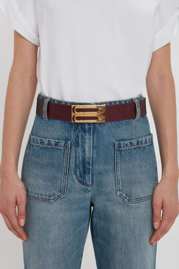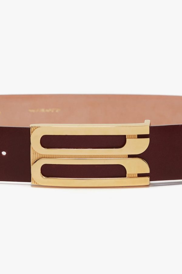 Elevate your wardrobe with the statement-making Jumbo Dorian Belt, featuring a rich burgundy hue that adds sophisticated contrast to any ensemble. Expertly crafted from premium smooth calf leather and accented with gleaming gold hardware, this designer belt delivers an instant upgrade to your favorite outfits.