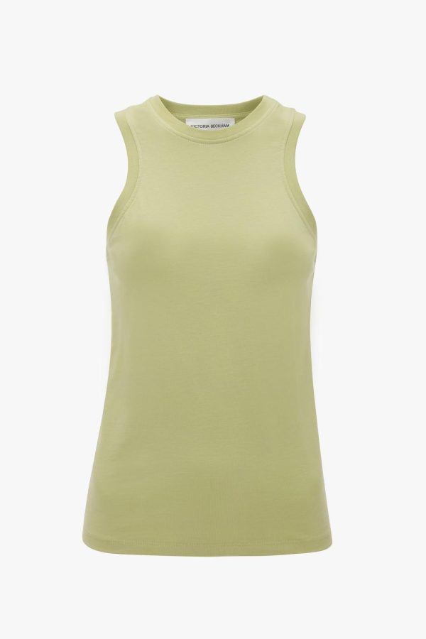 Elevate your everyday wardrobe with this essential Pistachio Tank Top, crafted from premium 100% organic cotton that feels incredibly soft against your skin. The relaxed racer-back design offers a modern athleisure vibe, while the sophisticated contrasting Victoria Beckham monogram at the back neckline delivers a luxurious finishing touch that sets this piece apart.